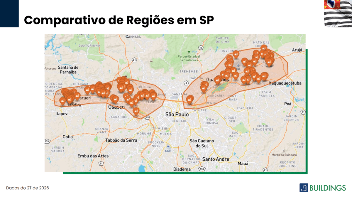Dentro desse cenário, a análise por localização ganha relevância. Regiões dentro do chamado “raio 15” — áreas em até 15 quilômetros do centro da capital — seguem como as mais disputadas do mercado logístico.